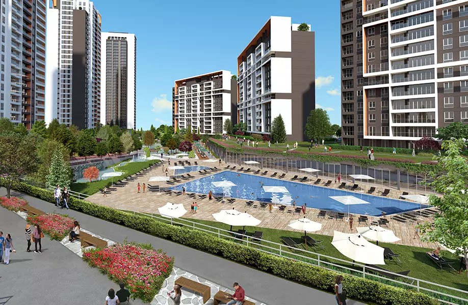 With the guarantee of Emlak Konut GYO (Real Estate Investment Company) that is the subsidiary of TOK?, there will be 1.431 houses and 40 commercial units shall be brought to use with SH-045 Houses of which construction is being continued in the opposite of Bahcesehir by Be-Ma insaat. SH-045 Houses, which are located on a land of 95 thousands square meter, are being actualized with the investment of 530 million TRL. In SH-045 Houses, those flats that represent wide and spacious area of use has types 1+1, 2+1, 3+1 and 4+1.